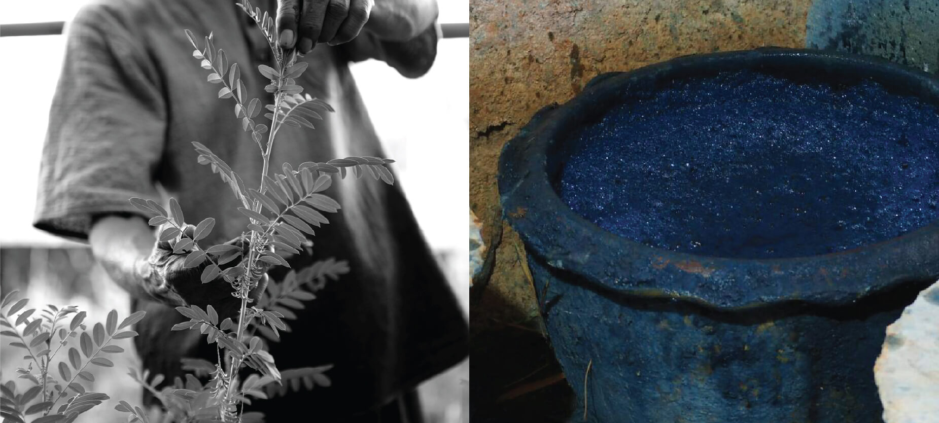 Craftspeople begin the process of turning green plants into dark blue paste, and white fabric into a constellation of intricate blue motifs. The first phase of the entire process involves extracting the blue dye from the leaves of the tall tropical shrub, Indigofera tinctoria, which grows abundantly throughout Southeast Asia.